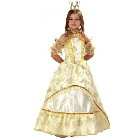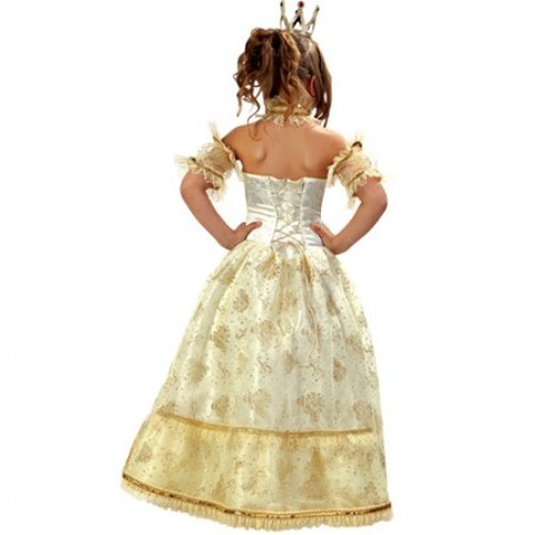 Этот очаровательный костюм Милой принцессы состоит из золотистого воздушного платья, золотистых нарукавников, короны и подъюбника.