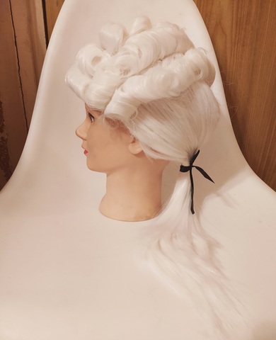 Исторический парик с хвостом в белом цвете идеально впишется в антураж вечеринки в средневековом стиле. С помощью такого небольшого, но значимого атрибута можно легко перевоплотиться в непривычный для себя карнавальный образ.