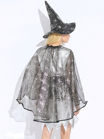 Полупрозрачные рукава украшены серебристым рисунком паутины.