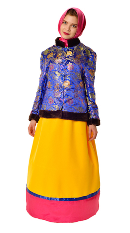 Артикул: P0109. Костюм Боярыни взрослый. Материал: китайский шелк на подкладе, искусственный мех, габардин, креп-сатин. В комплекте: Жакет на подкладе, юбка, платок, головной убор. Размер: 46-48, 50-52.