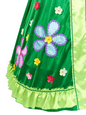 Женский карнавальный костюм Весны-царевны с ПОДЪЮБНИКОМ выполнен в зеленом и салатовом цвете. Длинное приталенное платье можно носить, как с поясом, так и без. Слой фатина на нижней юбке создает дополнительный объем. По подолу платья расположены крупные цветы. На спине изделие регулируется по ширине широким поясом, который завязывается в большой бант. Дополняет костюм Весна кокошник на голову в тон изделия.