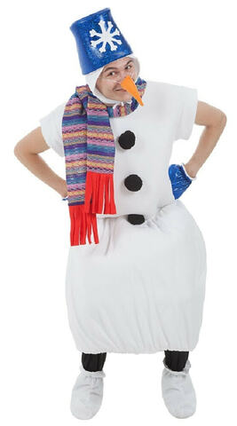 Костюм Снеговика взрослый представляет собой классический образ зимнего персонажа. Ведро на голове, нос-морковка, шарф и рукавицы – всё при нём. В костюме Снеговика вы блестяще выступите на сцене или станете героем детского праздника. Белая туника и яркие аксессуары создают красочный новогодний образ.