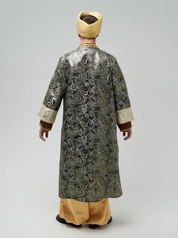 Артикул: P0164 Комплект: Рубашка, шаровары, пояс, чалма, халат, бородка. Материал: Креп-сатин, парча, жаккард. Размер: 46-50